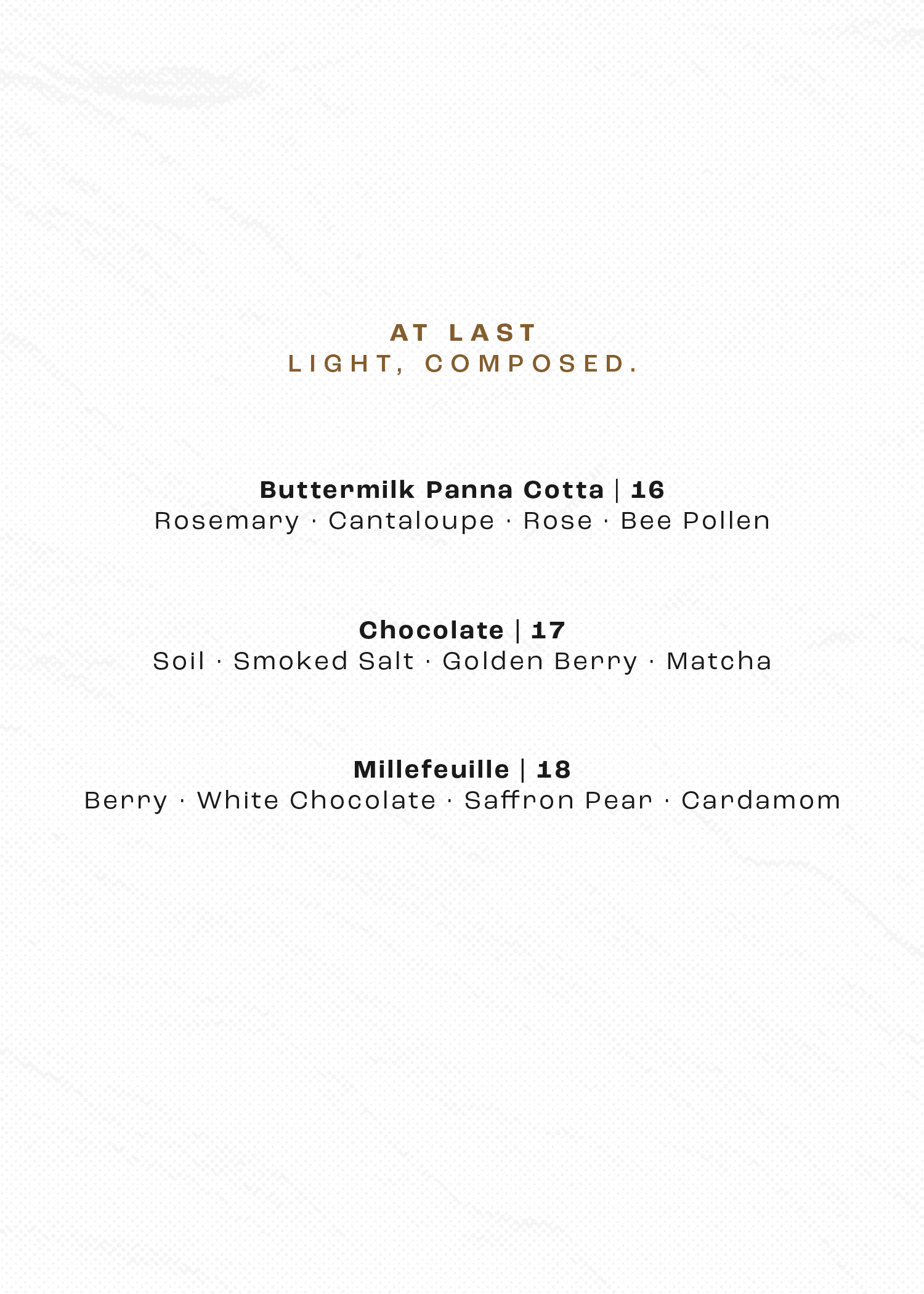 Dessert menu printed on 5” × 7” on #130 natural paper
